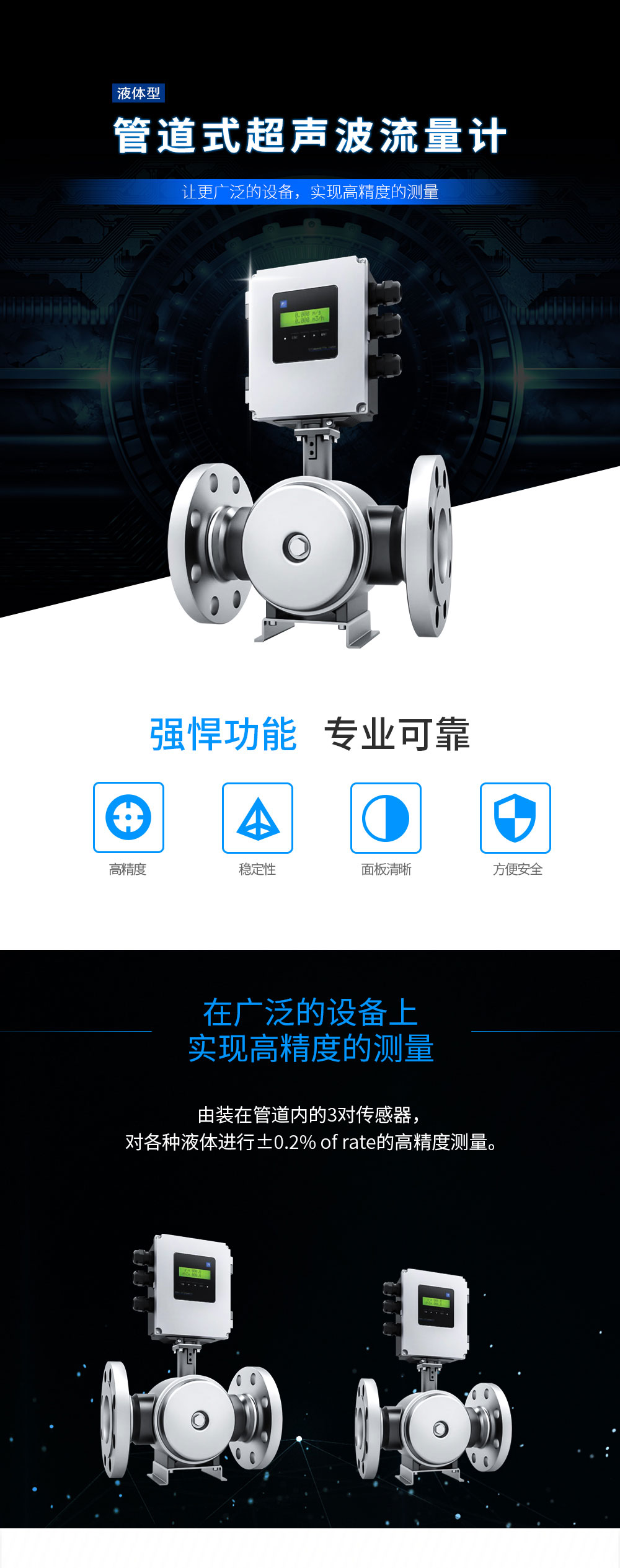 通過(guò)本體中的3對超聲波傳感器對各種液體進(jìn)行高達0.2%級精度的測量