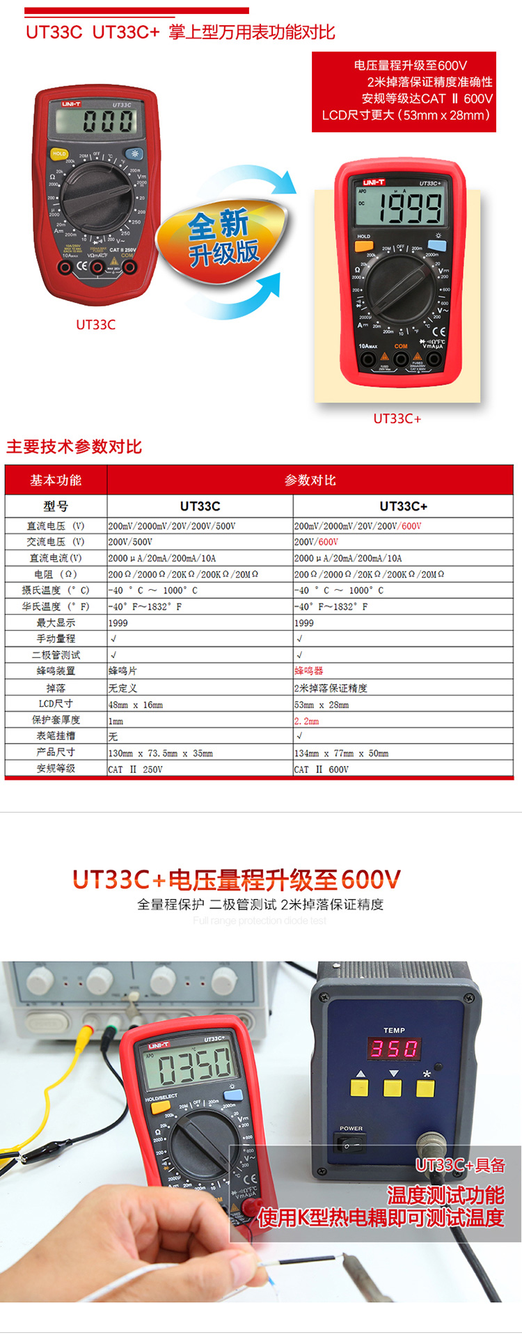 萬(wàn)用表 優(yōu)利德/UNI-T 數字萬(wàn)用表,掌上型,UT33C+