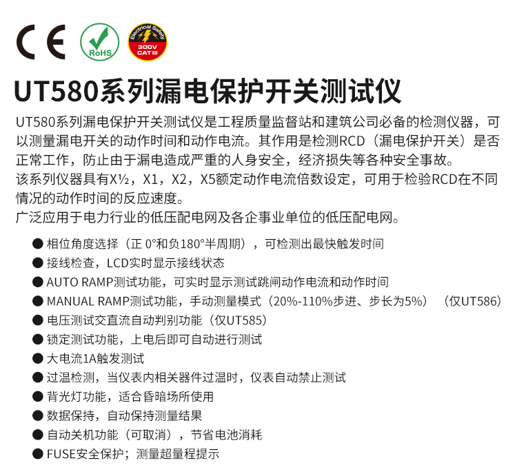 漏電保護開(kāi)關(guān)測試儀 優(yōu)利德UNI-T 漏電保護開(kāi)關(guān)測試儀,步長(cháng)5% UT586