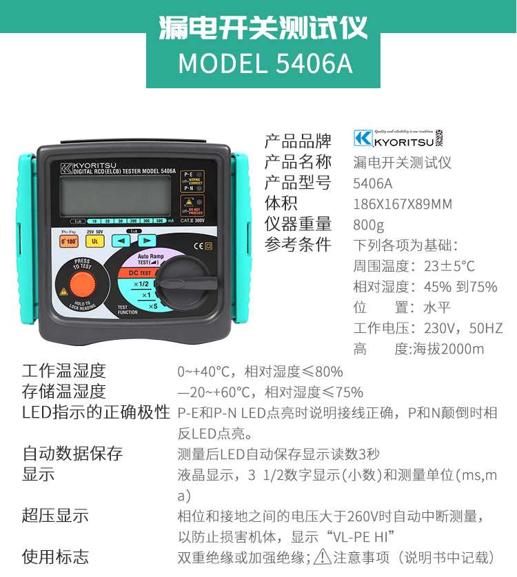 克列茨KYORITSU 漏電開(kāi)關(guān)測試儀,5406A
