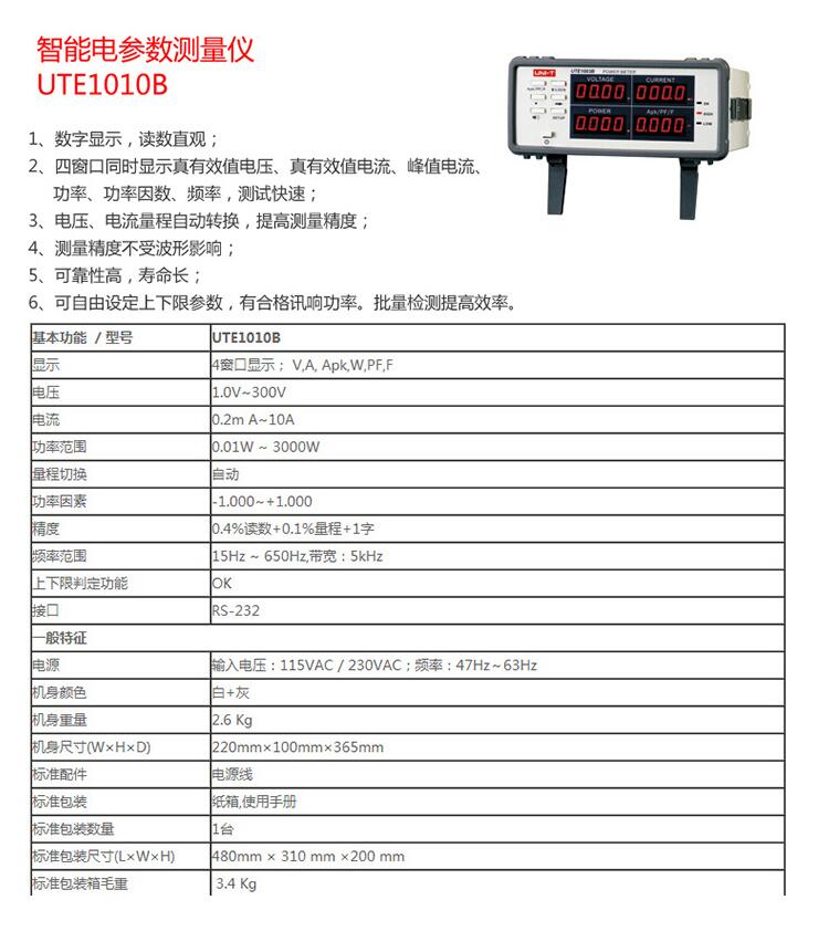 電氣多功能測試儀 優(yōu)利德UNI-T 智能電參數測試儀,UTE1010B
