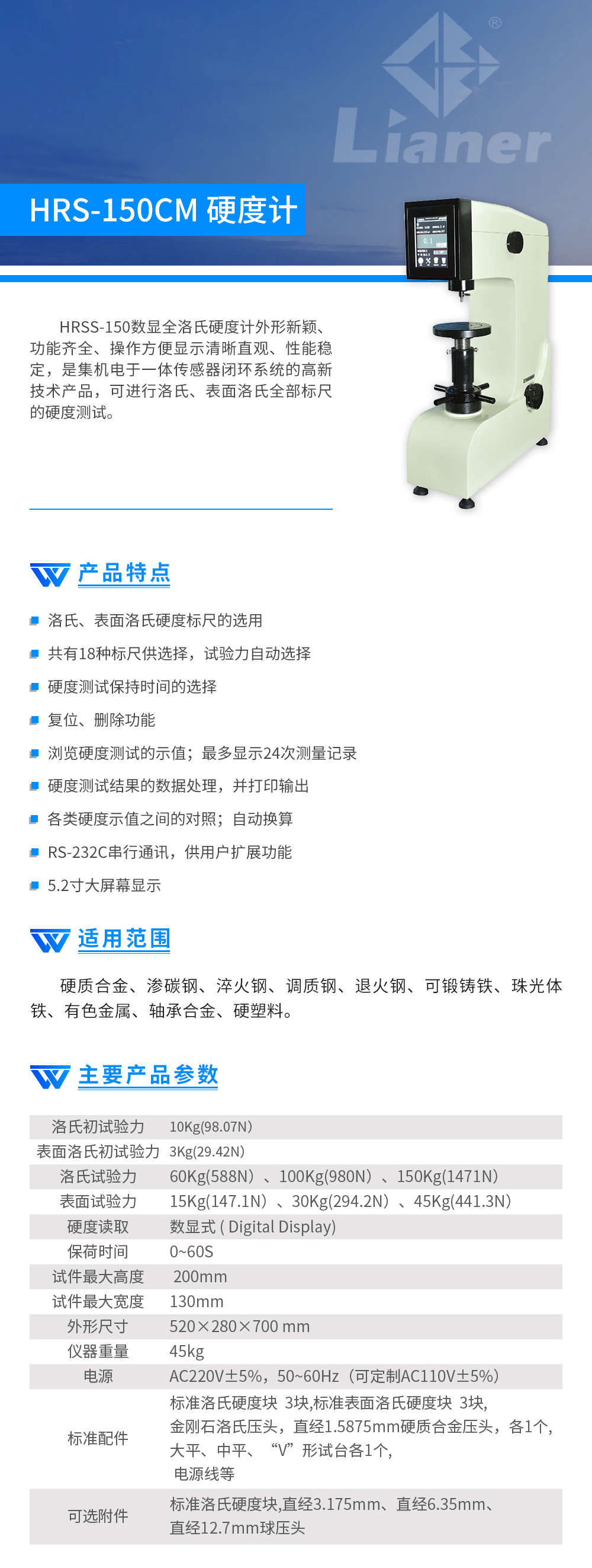 硬度計 聯(lián)爾 數顯全洛氏硬度計 HRSS-150