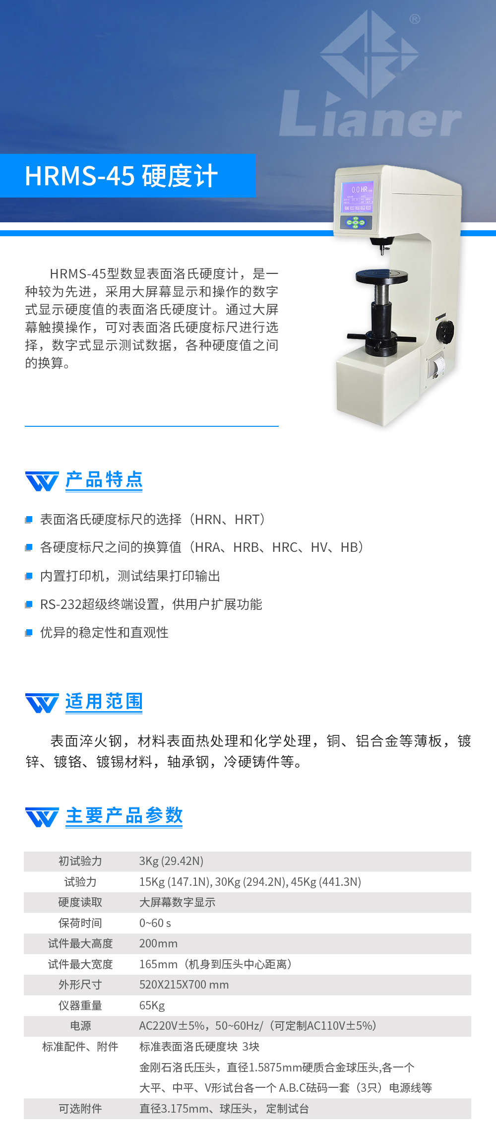 硬度計 聯(lián)爾 數顯表面洛氏硬度計 HRMS-45