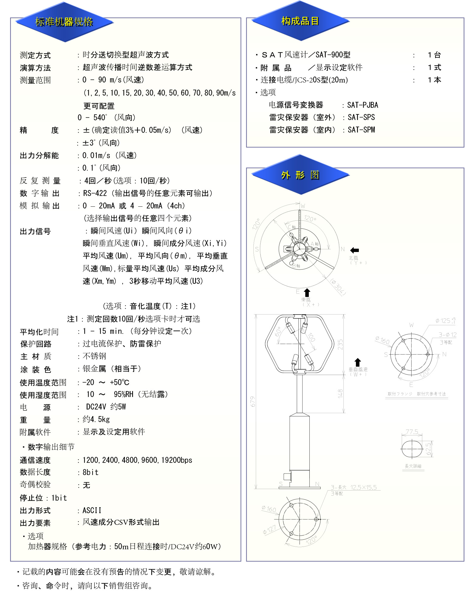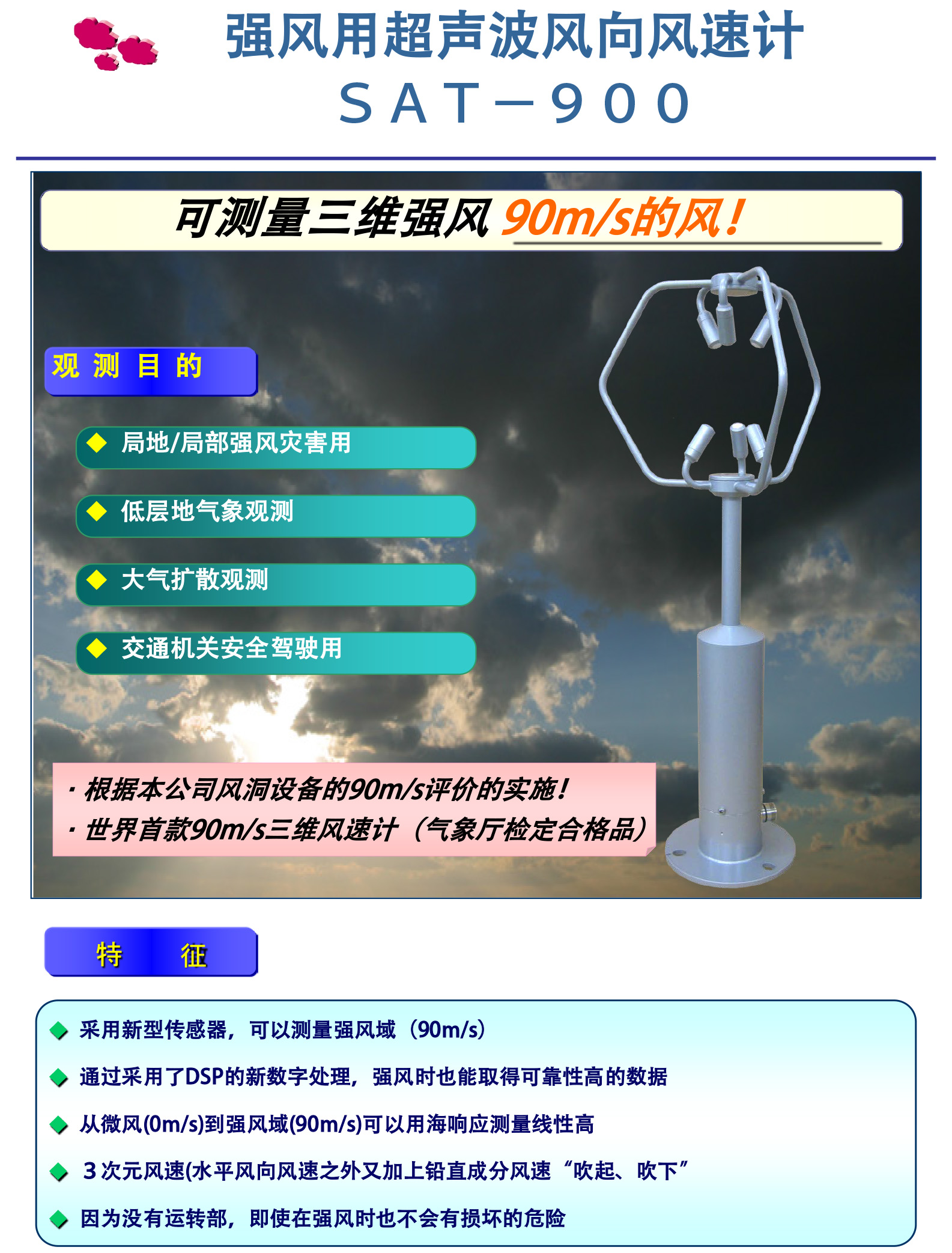 風(fēng)速儀 Sonic 3D超聲波風(fēng)速計(用于強風(fēng)) SAT-900